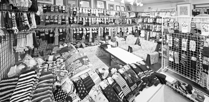 営業部では商品企画部を軸に、次のシーズンの流行をいち早く察知して、デザインや図柄、カラーを決めていきます。販売ルートに応じて求められる商品の特性が異なりますから、柔軟に企画内容を変えて対応しています。稲坂莫大小の商品は、昔からどんなデザインの靴下でも、素材や履き心地など品質を守ることに重点を置いています。特に履き心地は、自分で履いて確認をしています。多く見かける一般的な靴下は、安価で品質もデザインもそれなりというものが多いようです。しかし私たちは“少々値が高くても、満足のいく品質” だと評価されるものを作っていきたいと考えています。特に、これからは「これがメイドインジャパン」だと胸を張れる国内製にも、一層の力を入れていきたいと思っています。